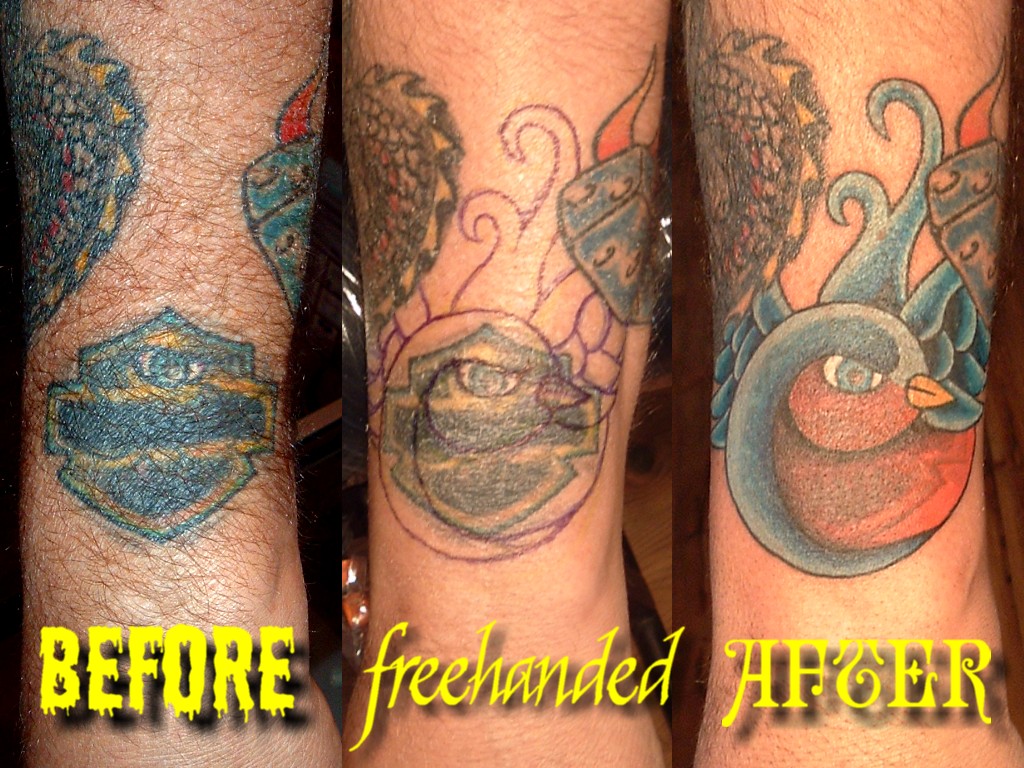 Here are some examples of my cover-ups, reworks and add-ons.